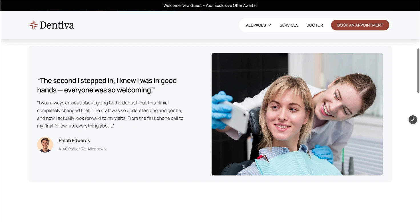 Patient testimonials provide social proof and reassurance for new visitors, demonstrating positive experiences and satisfaction with the clinic’s care.