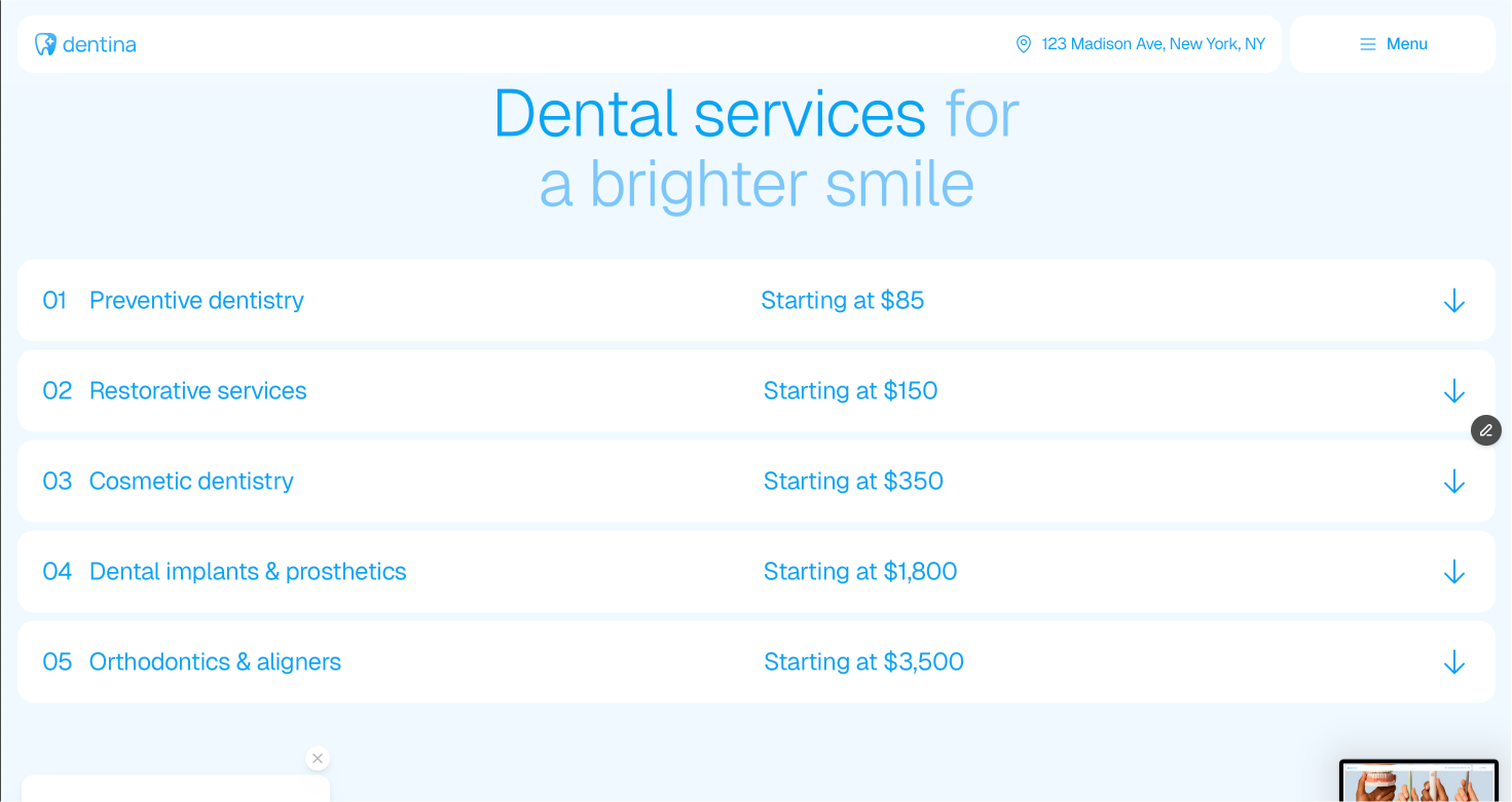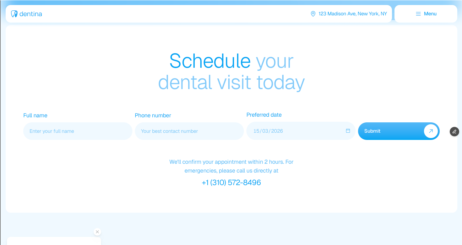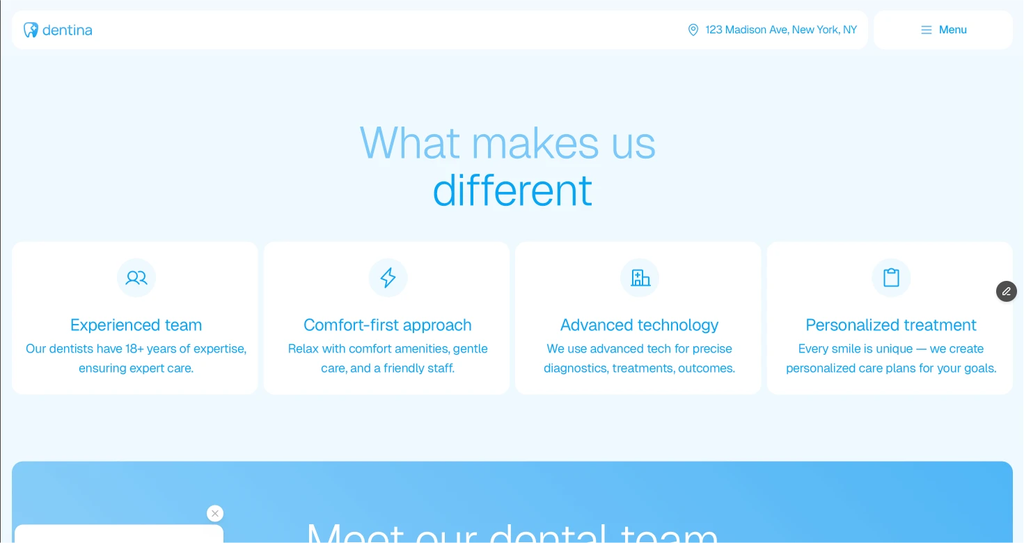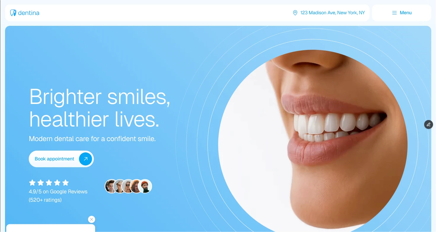 Dentina is a concept website project created to demonstrate the type of digital experiences we can design and develop for healthcare providers and service-based businesses.